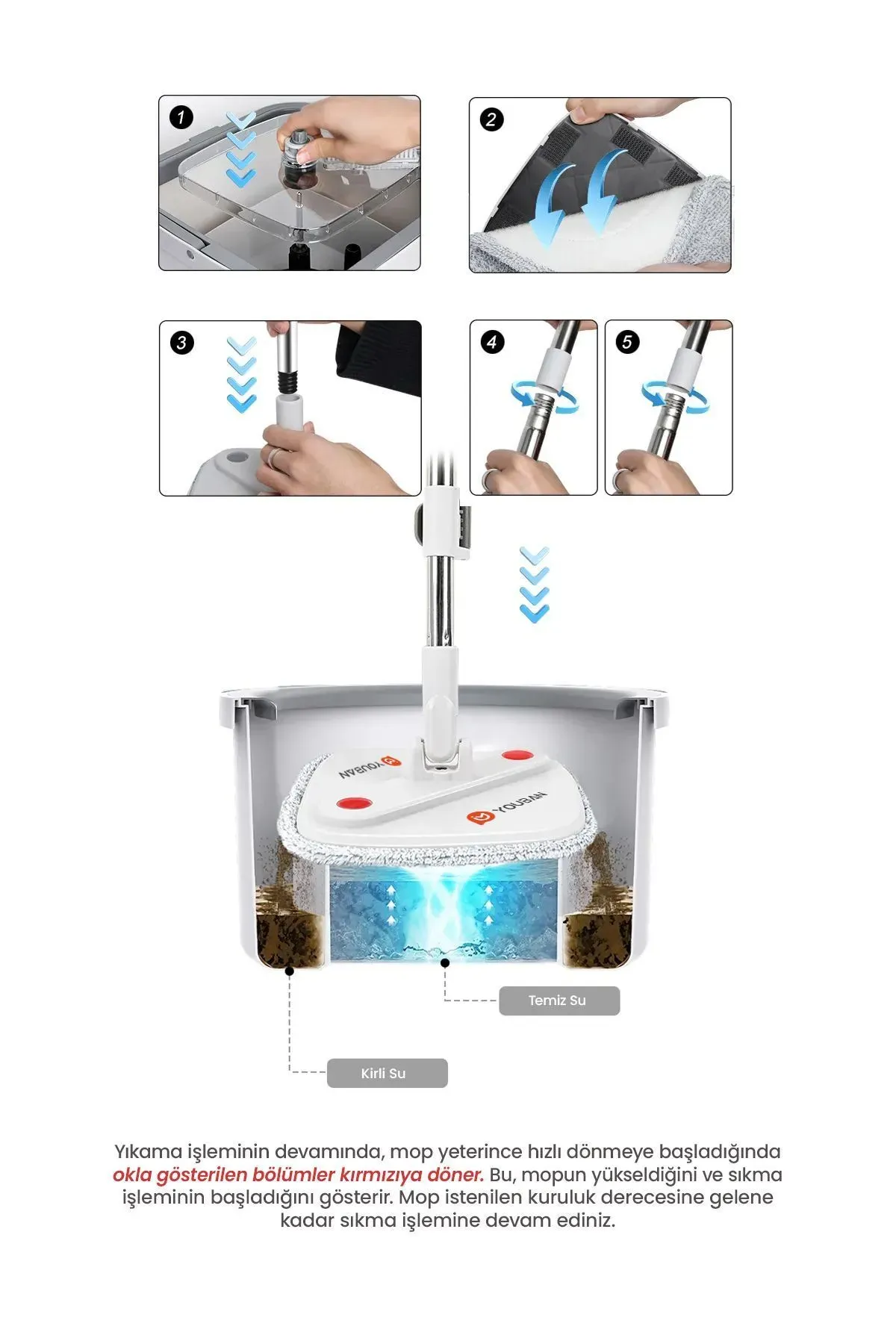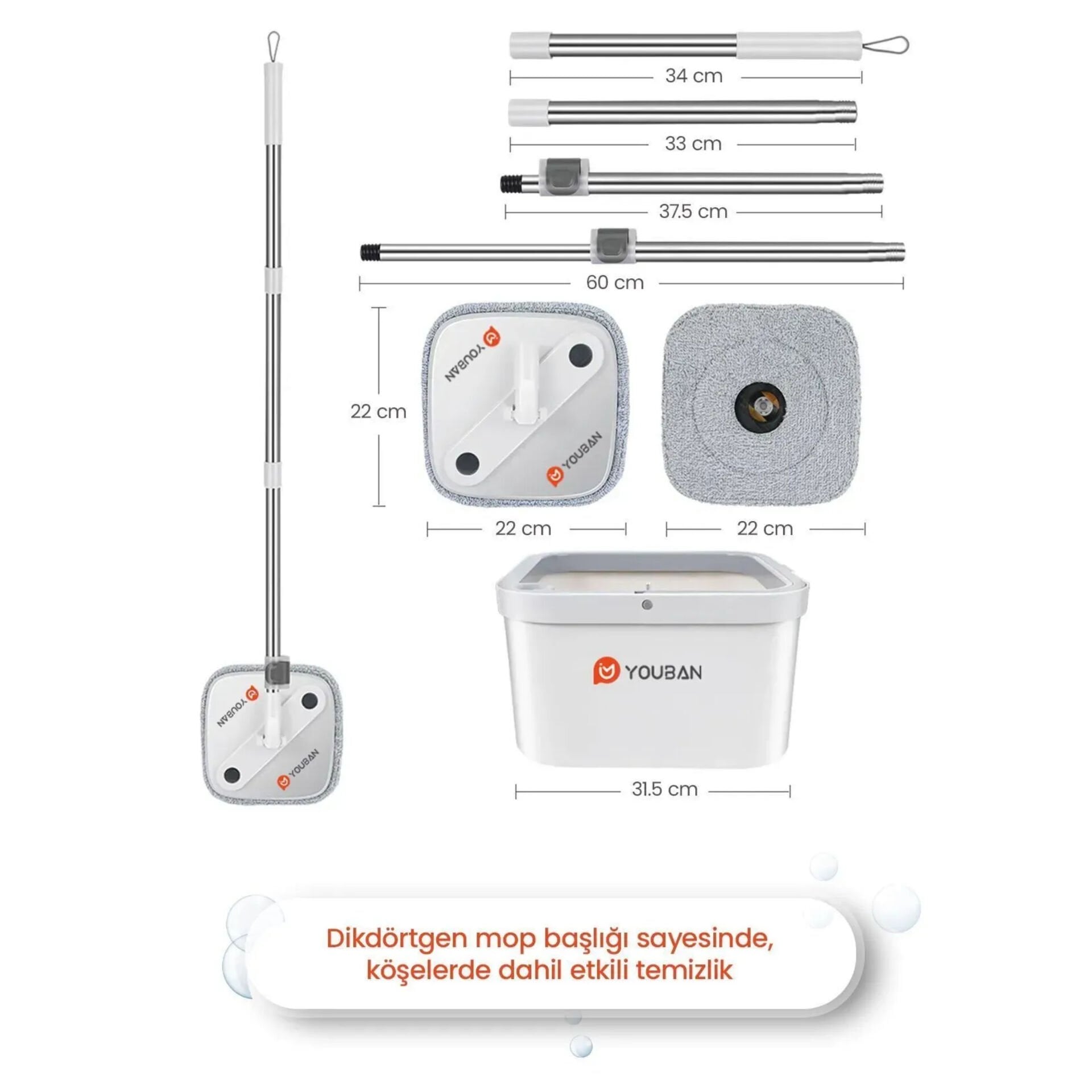 - Otomatik temizlik seti, mop pro temiz su ile kirli suyu ayıran 4 adet bezli yapısıyla ev temizliğinizi kolaylaştırır